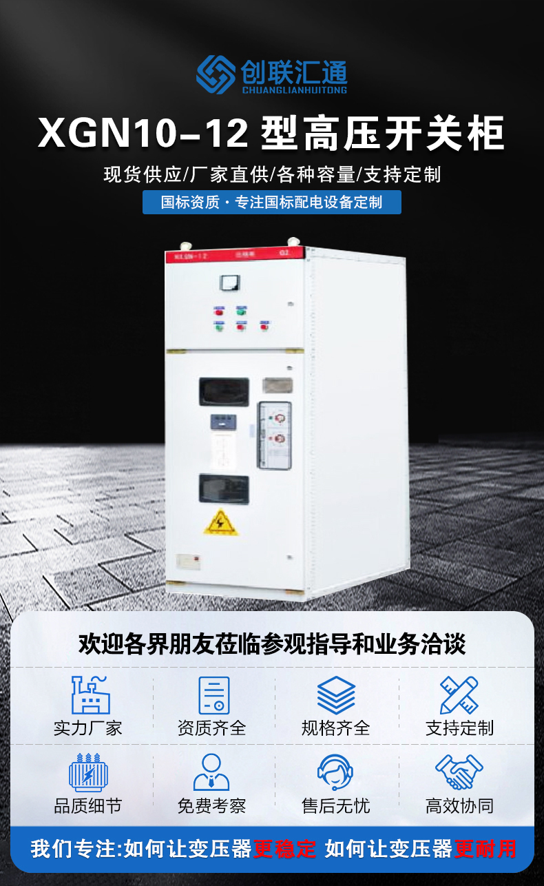 XGN2-10箱型固定式金屬封閉開關(guān)設備用于12kV及以下三相交流50Hz系統(tǒng)中作為接受與分配電能之用,特別適合于頻繁操作的場合,其母線系統(tǒng)為單母線,也可派生出單母線帶旁路和雙母線結(jié)構(gòu)。