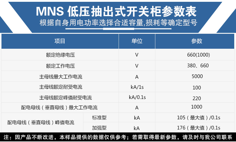 MNS型低壓抽屜式開關柜適用于三相交流50、60Hz,額定電壓660V,額定電流4000A以下的三相四線制及三相五線制電力系統,作為接受電能和分配電能之間。MNS柜也被稱為MNS抽屜柜或者MNS配電柜。