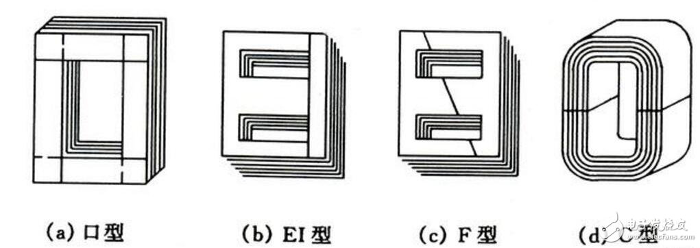 為了削減鐵芯中的磁滯消耗和渦流消耗,變壓器的鐵芯大多用0.35~0.5 mm厚的硅鋼片疊成,為了下降磁路的磁阻,普通采取交織疊裝體例,行將每層硅鋼片的接縫錯開。以下圖所示為幾種常見的鐵芯外形。
