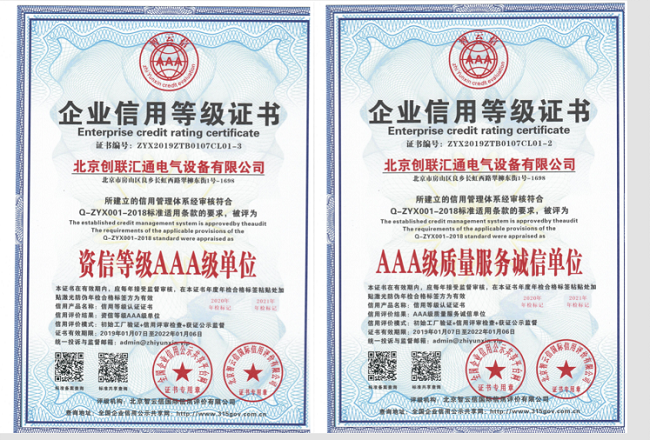 近日,倍受業內關注的2018年度中AAA級重質量守信用企業復審在北京落幕,中市場監測中心聯合中市場研究中心等多家機構以及企業評審委員會組織專家對申報復審的中AAA級重質量守信用企業等殊榮進行綜合評價。北京創聯匯通電氣設備有限公司經中產業質量調查評價中心、中企業信用評價管理中心等機構審核,再次被評為“中AAA級信用企業”榮譽稱號。