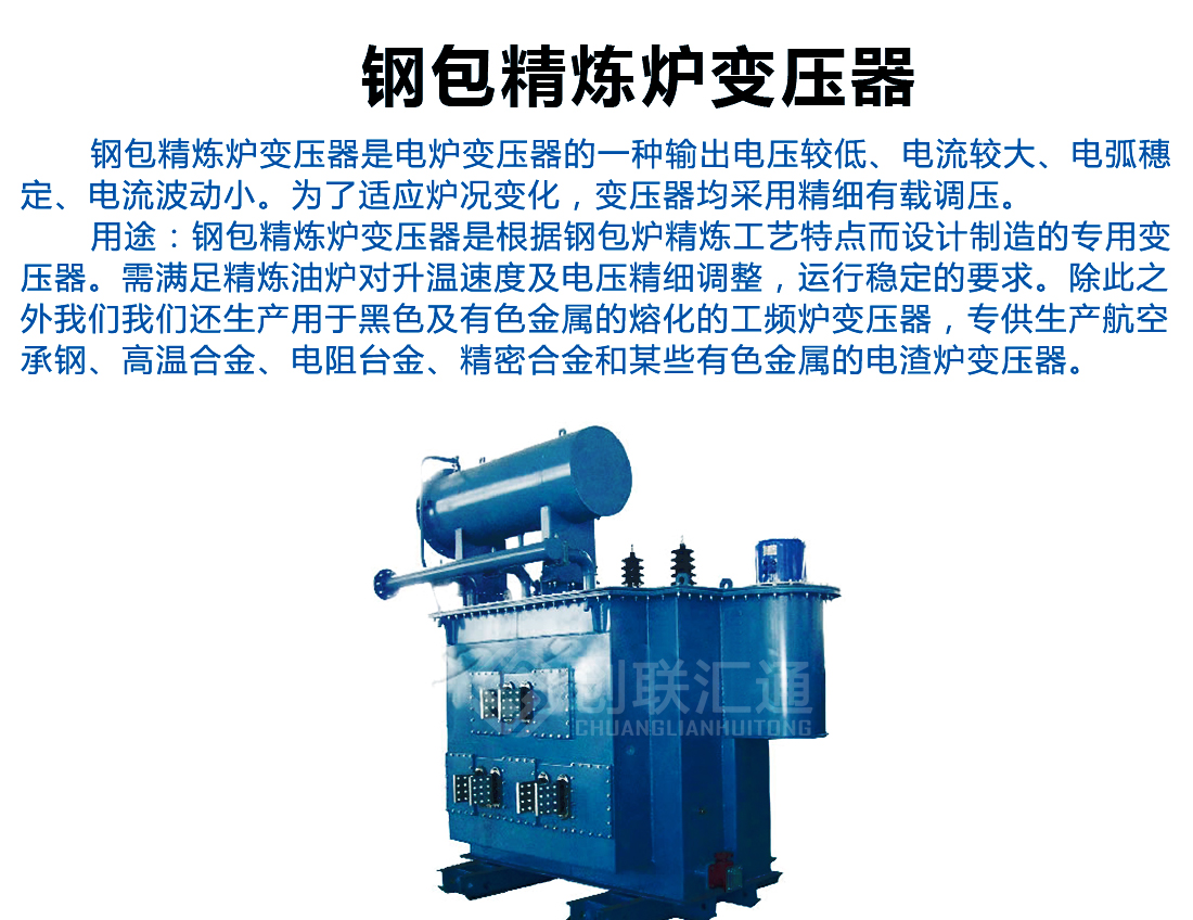 鋼包精煉爐變壓器是根據(jù)鋼包爐精煉工藝特點而設(shè)計制造的專用變壓器。需滿足精煉油爐對升溫速度及電壓精細調(diào)整,運行穩(wěn)定的要求。除此之外創(chuàng)聯(lián)匯通電氣還生產(chǎn)用于黑色及有色金屬的熔化的工頻爐變壓器,專供生產(chǎn)航空承鋼、高溫合金、電阻臺金、精密合金和某些有色金屬的電渣爐變壓器。