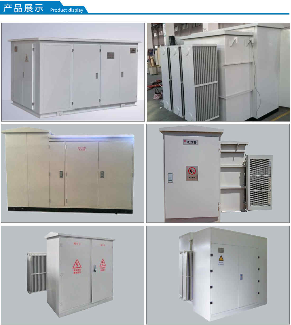 本產品是將變壓器,負荷開關,高壓熔斷器安裝在變壓器的箱體內,利用變壓器的絕緣液體作為整個產品的絕緣和散熱介質,采用全密封結構,外殼采用分體,噴丸、酸洗、磷化、分別噴涂底漆、中間漆、面漆達到表面的防腐性、耐厚性、防紫外線性均超過普通噴涂的強度,具有體積小,重量輕、安裝方便等優點。