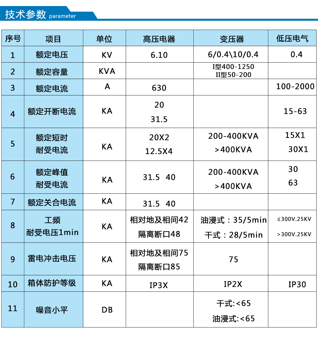 移動式箱式變電站適用于住宅小區、城市公用變、繁華鬧市、施工電源等,用戶可根據不同的使用條件、負荷等級選擇箱式變。